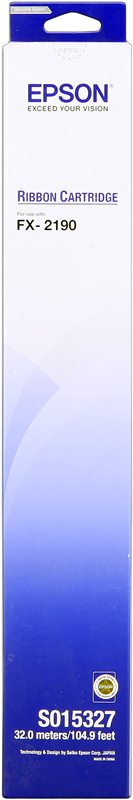 Epson FX-2190 black ribbon (C13S015327) (C13S015327) Fabric colour ribbon, 12 million characters 114,76 kr.VAT incl., free shipping directly from stock Delivery time 1-2 days add to basket Product information "Epson FX-2190 black ribbon C13S015327"Black Fabric Ribbon Designed to precise specifications, EPSONs fabric ribbons provide maximum durability for machines working in extreme environments. Compatible Main Units: FX-2190 (NOT compatible with FX-1180+/2180) Read moreread lessSuitable for the following printersEpson FX/DFXFX-2190technical dataOther featuresProducts per pallet1200 pc(s)Country of originChinaMinimum order quantity50 pc(s)Ribbon size319x75x36Packaging dataPackage typePackage weight0.195 gPackage height80 mmPackage depth495 mmPackage width35 mmPackaging contentQuantity per pack1 pc(s)Weight & dimensionsWeight120 gPerformanceCompatible productsFX-2190Brand compatibilityEpsonPrint yield1.2e+007 charactersPrint head9-pinPrint technologyDot MatrixPrinting colours BlackColourNoFeaturesColourNoTechnical detailsCompatibility- FX-2190IIN - FX-2190II - Epson FX-2190N - Epson FX-2190Product colour BlackPallet width1200 mmPallet height1000 mmMaster (outer) case height495 mmMaster (outer) case width375 mmMaster carton weight11.1 gMaster (outer) case length495 mmQuantity per master carton50 pc(s)Products per pallet layer300 pc(s)Products per pallet (UK)1200 pc(s)Pallet length (UK)1200 mmPallet width (UK)1000 mmPallet height (UK)2120 mmAll details without engagement. Data source: IceCatManufacturer information on product safety (GPSR)Epson Deutschland GmbHSchiessstraße 4940549 Düsseldorf E-mail: info@epson.de Website: https://www.epson.de/de_DE Your product is right in your shopping cart! Select your printer to make sure the selected product fits for you.Loading...