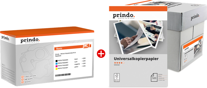 Prindo Basic black / cyan / magenta / yellow / White value pack (PRTKYTK5430 MCVP 01) value pack black / cyan / magenta / yellow / White ~5.000 pages 1.487,53 kr.-15%1.269,86 kr.VAT incl., free shipping directly from stock Delivery time 1-2 days add to basket Content Basic black ~1.250 pages 17,4 p / page Basic cyan ~1.250 pages 23,1 p / page Basic magenta ~1.250 pages 23,1 p / page Basic yellow ~1.250 pages 23,1 p / page White Graduated pricesfrom 1 pcs.1.269,86 kr.VAT incl.from 2 pcs.1.206,40 kr.VAT incl.from 4 pcs.1.142,91 kr.VAT incl.from 6 pcs.1.079,41 kr.VAT incl. Product information "Prindo Basic black / cyan / magenta / yellow / White value pack PRTKYTK5430 MCVP 01"value pack black / cyan / magenta / yellow / White ~5.000 pages Prindo Promise: Top quality for a fair price, that is what our exclusive private label product line stand for Remanufactured original toners and cartridges, working parts changes and only highest quality of colors and materials Only selected partners and suppliers 5 years guarantee on Prindo products – no loss of warranty for your printer Read moreread lessSuitable for the following printersKyocera ECOSYS MAECOSYS MA2100cfxECOSYS MA2100cwfxKyocera ECOSYS PAECOSYS PA2100cwxECOSYS PA2100cxManufacturer information on product safety (GPSR)Media-Concept Bürobedarf GmbH Inselkammerstrasse 582008 Unterhaching E-mail: mail@prindo.dk Website: www.prindo.dk Suitable accessories for your printer Original Kyocera TK-5430K black toner (1T0C0A0NL1)colourTape Width Size colour: Page number:~1.250 pagesPage price:35,0 p / page437,18 kr.VAT incl., free shipping directly from stock add to basket directly from stock add to basket directly from stock add to basket directly from stock add to basket directly from stock add to basket directly from stock add to basket directly from stock add to basket directly from stock add to basket directly from stock add to basket Price / performance winner compatible with Kyocera TK-5440K Prindo Classic black tonercolourTape Width Size colour: Page number:~2.800 pagesPage price:13,3 p / page372,29 kr.VAT incl., free shipping directly from stock add to basket directly from stock add to basket directly from stock add to basket directly from stock add to basket directly from stock add to basket Best price compatible with Kyocera TK-5430K Prindo Basic black tonercolourTape Width Size colour: Page number:~1.250 pagesPage price:20,4 p / page255,29 kr.VAT incl., free shipping directly from stock add to basket directly from stock add to basket directly from stock add to basket directly from stock add to basket Original Kyocera toner for your printer. Kyocera TK-5430K black toner (1T0C0A0NL1)colourTape Width Size:Standard colour: Page number:~1.250 pagesPage price:35,0 p / page437,18 kr.VAT incl., free shipping directly from stock add to basket Kyocera TK-5440K black toner (1T0C0A0NL0)colourTape Width Size:Standard colour: Page number:~2.800 pagesPage price:20,7 p / page579,27 kr.VAT incl., free shipping directly from stock add to basket Kyocera TK-5440 MCVP black / cyan / magenta / yellow / White value pack (+ Prindo Universal Papier 2500 Blatt)colourTape Width Size:Standard colour: Page number:~10.000 pagesPage price:33,0 p / page3.302,15 kr.VAT incl., free shipping directly from stock add to basket Kyocera TK-5430C cyan toner (1T0C0ACNL1)colourTape Width Size:Standard colour: Page number:~1.250 pagesPage price:46,3 p / page579,27 kr.VAT incl., free shipping directly from stock add to basket Kyocera TK-5440C cyan toner (1T0C0ACNL0)colourTape Width Size:Standard colour: Page number:~2.400 pagesPage price:35,5 p / page852,47 kr.VAT incl., free shipping directly from stock add to basket Kyocera TK-5430M magenta toner (1T0C0ABNL1)colourTape Width Size:Standard colour: Page number:~1.250 pagesPage price:45,5 p / page568,29 kr.VAT incl., free shipping directly from stock add to basket Kyocera TK-5440M magenta toner (1T0C0ABNL0)colourTape Width Size:Standard colour: Page number:~2.400 pagesPage price:35,5 p / page852,47 kr.VAT incl., free shipping directly from stock add to basket Kyocera TK-5430Y yellow toner (1T0C0AANL1)colourTape Width Size:Standard colour: Page number:~1.250 pagesPage price:46,3 p / page579,27 kr.VAT incl., free shipping directly from stock add to basket Kyocera TK-5440Y yellow toner (1T0C0AANL0)colourTape Width Size:Standard colour: Page number:~2.400 pagesPage price:35,5 p / page852,47 kr.VAT incl., free shipping directly from stock add to basket Our price / performance winners Compatible Prindo Classic toner for your printer.✅ Level indicator ✅ More printing performance ✅ 5-year warranty ✅ No loss of warranty for your printer compatible with Kyocera TK-5440K Prindo Classic black tonercolourTape Width Size:Standard colour: Page number:~2.800 pagesPage price:13,3 p / page372,29 kr.VAT incl., free shipping directly from stock add to basket Prindo Classic black / cyan / magenta / yellow / White value packcolourTape Width Size:Standard colour: Page number:~10.000 pagesPage price:20,3 p / page2.249,20 kr.-10%2.031,47 kr.VAT incl., free shipping directly from stock add to basket compatible with Kyocera TK-5440C Prindo Classic cyan tonercolourTape Width Size:Standard colour: Page number:~2.400 pagesPage price:23,0 p / page553,06 kr.VAT incl., free shipping directly from stock add to basket compatible with Kyocera TK-5440M Prindo Classic magenta tonercolourTape Width Size:Standard colour: Page number:~2.400 pagesPage price:23,0 p / page553,06 kr.VAT incl., free shipping directly from stock add to basket compatible with Kyocera TK-5440Y Prindo Classic yellow tonercolourTape Width Size:Standard colour: Page number:~2.400 pagesPage price:23,0 p / page553,06 kr.VAT incl., free shipping directly from stock add to basket Our cheap alternatives Compatible Prindo Basic toner for your printer.✅ More printing performance ✅ 5-year warranty ✅ No loss of warranty for your printer compatible with Kyocera TK-5430K Prindo Basic black toner
