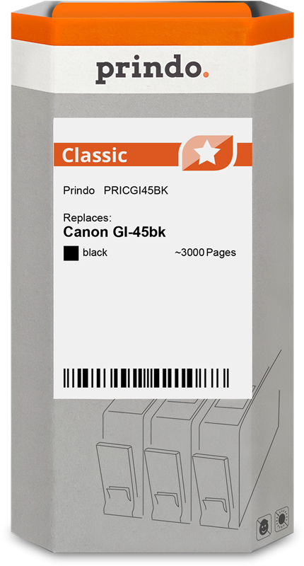 compatible with Canon GI-45bk black (6288C001) Prindo Classic black ink cartridge (PRICGI45BK) ink cartridge black ~3.000 pages 89,13 kr.VAT incl., free shipping directly from stock Delivery time 1-2 days add to basket Prindo Classic black ~3.000 pages3,0 p / page 89,13 kr. Prindo Classic cyan ~3.000 pages1,6 p / page 48,67 kr. Prindo Classic magenta ~3.000 pages1,6 p / page 48,67 kr. Prindo Classic yellow ~3.000 pages1,6 p / page 48,67 kr. Graduated pricesfrom 1 pcs.89,13 kr.VAT incl.from 2 pcs.84,64 kr.VAT incl.from 4 pcs.80,19 kr.VAT incl.from 6 pcs.75,73 kr.VAT incl. Product information "Prindo Classic black ink cartridge PRICGI45BK"ink cartridge black ~3.000 pages Prindo Promise: Top quality for a fair price, that is what our exclusive private label product line stand for Remanufactured original toners and cartridges, working parts changes and only highest quality of colors and materials Only selected partners and suppliers 5 years guarantee on Prindo products – no loss of warranty for your printer Read moreread lessSuitable for the following printersCanon MAXIFY GXMAXIFY GX1040MAXIFY GX2040Manufacturer information on product safety (GPSR)Media-Concept Bürobedarf GmbH Inselkammerstrasse 582008 Unterhaching E-mail: mail@prindo.dk Website: www.prindo.dk Suitable accessories for your printer Original Canon GI-45bk black ink cartridge (6288C001)colourTape Width Size colour: Page number:~3.000 pagesPage price:4,8 p / page145,49 kr.VAT incl., free shipping directly from stock add to basket directly from stock add to basket directly from stock add to basket directly from stock add to basket Original Canon Ink cartridge for your printer. Canon GI-45bk black ink cartridge (6288C001)colourTape Width Size:Standard colour: Page number:~3.000 pagesPage price:4,8 p / page145,49 kr.VAT incl., free shipping directly from stock add to basket Canon GI-45c cyan ink cartridge (6285C001)colourTape Width Size:Standard colour: Page number:~3.000 pagesPage price:2,6 p / page79,50 kr.VAT incl., plus shipping costs directly from stock add to basket Canon GI-45m magenta ink cartridge (6286C001)colourTape Width Size:Standard colour: Page number:~3.000 pagesPage price:2,6 p / page79,50 kr.VAT incl., plus shipping costs directly from stock add to basket Canon GI-45y yellow ink cartridge (6287C001)colourTape Width Size:Standard colour: Page number:~3.000 pagesPage price:2,6 p / page79,50 kr.VAT incl., plus shipping costs directly from stock add to basket Your product is right in your shopping cart! Select your printer to make sure the selected product fits for you.Loading...