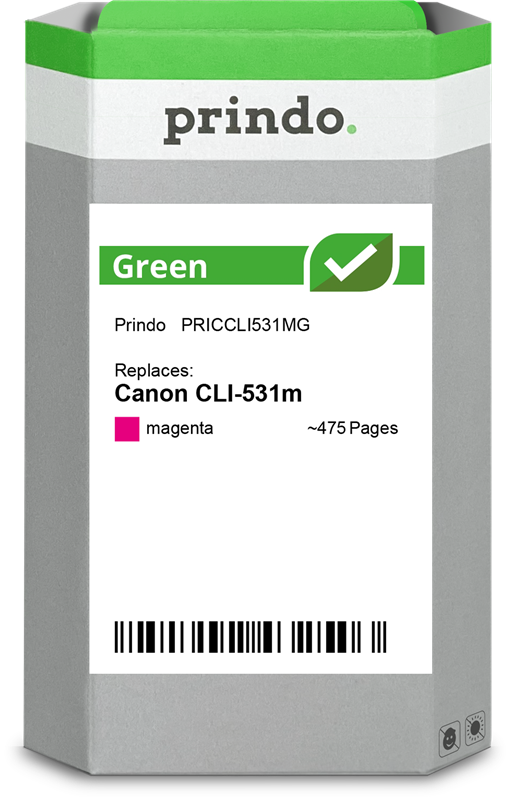 compatible with Canon CLI-531m magenta (6120C001) Prindo Green magenta ink cartridge (PRICCLI531MG) ink cartridge magenta ~475 pages 88,28 kr.VAT incl., plus shipping costs directly from stock Delivery time 1-2 days add to basket Prindo Green black ~400 pages27,7 p / page 110,84 kr. Prindo Green black ~400 pages24,1 p / page 96,50 kr. Prindo Green cyan ~515 pages17,1 p / page 88,28 kr. Prindo Green magenta ~475 pages18,6 p / page 88,28 kr. Prindo Green yellow ~515 pages17,1 p / page 88,28 kr. Prindo Green Gray ~400 pages22,1 p / page 88,28 kr. Graduated pricesfrom 1 pcs.88,28 kr.VAT incl.from 2 pcs.83,85 kr.VAT incl.from 4 pcs.79,44 kr.VAT incl.from 6 pcs.75,02 kr.VAT incl. Product information "Prindo Green magenta ink cartridge PRICCLI531MG"ink cartridge magenta ~475 pages Prindo Promise: Top quality for a fair price, that is what our exclusive private label product line stand for Remanufactured original toners and cartridges, working parts changes and only highest quality of colors and materials Only selected partners and suppliers 5 years guarantee on Prindo products – no loss of warranty for your printer Read moreread lessSuitable for the following printersCanon PIXMA TSPIXMA TS8750PIXMA TS8751Manufacturer information on product safety (GPSR)Media-Concept Bürobedarf GmbH Inselkammerstrasse 582008 Unterhaching E-mail: mail@prindo.dk Website: www.prindo.dk Suitable accessories for your printer Original Canon CLI-531bk black ink cartridge (6118C001)colourTape Width Size colour: Page number:~400 pagesPage price:32,2 p / page128,76 kr.VAT incl., free shipping directly from stock add to basket directly from stock add to basket Delivery date unknown add to basket directly from stock add to basket directly from stock add to basket directly from stock add to basket directly from stock add to basket Price / performance winner compatible with Canon CLI-531bk black (6118C001) Prindo Classic black ink cartridgecolourTape Width Size colour: Page number:~400 pagesPage price:19,7 p / page78,87 kr.VAT incl., plus shipping costs directly from stock add to basket directly from stock add to basket Delivery date unknown add to basket directly from stock add to basket Delivery date unknown add to basket directly from stock add to basket Original Canon Ink cartridge for your printer. Canon CLI-531bk black ink cartridge (6118C001)colourTape Width Size:Standard colour: Page number:~400 pagesPage price:32,2 p / page128,76 kr.VAT incl., free shipping directly from stock add to basket Canon PGI-530pgbk black ink cartridge (6117C001)colourTape Width Size:Standard colour: Page number:~400 pagesPage price:37,0 p / page147,81 kr.VAT incl., free shipping directly from stock add to basket Canon PGI-530+CLI-531 black / cyan / magenta / yellow / Gray value pack (+ 10x15 cm Fotopapier 50 Blatt)colourTape Width Size:Standard colour: Page number:~2.705 pagesPage price:25,3 p / page683,10 kr.VAT incl., free shipping Delivery date unknown add to basket Canon CLI-531c cyan ink cartridge (6119C001)colourTape Width Size:Standard colour: Page number:~515 pagesPage price:22,8 p / page117,56 kr.VAT incl., free shipping directly from stock add to basket Canon CLI-531gy Gray ink cartridge (6122C001)colourTape Width Size:Standard colour: Page number:~400 pagesPage price:29,4 p / page117,56 kr.VAT incl., free shipping directly from stock add to basket Canon CLI-531m magenta ink cartridge (6120C001)colourTape Width Size:Standard colour: Page number:~475 pagesPage price:24,7 p / page117,56 kr.VAT incl., free shipping directly from stock add to basket Canon CLI-531y yellow ink cartridge (6121C001)colourTape Width Size:Standard colour: Page number:~515 pagesPage price:22,8 p / page117,56 kr.VAT incl., free shipping directly from stock add to basket Our price / performance winners Compatible Prindo Classic Ink cartridge for your printer.✅ Level indicator ✅ More printing performance ✅ 5-year warranty ✅ No loss of warranty for your printer compatible with Canon CLI-531bk black (6118C001) Prindo Classic black ink cartridgecolourTape Width Size:Standard colour: Page number:~400 pagesPage price:19,7 p / page78,87 kr.VAT incl., plus shipping costs directly from stock add to basket compatible with Canon PGI-530pgbk black (6117C001) Prindo Classic black ink cartridgecolourTape Width Size:Standard colour: Page number:~400 pagesPage price:22,6 p / page90,60 kr.VAT incl., free shipping directly from stock add to basket compatible with Canon CLI-531c cyan (6119C001) Prindo Classic cyan ink cartridgecolourTape Width Size:Standard colour: Page number:~515 pagesPage price:14,0 p / page72,00 kr.VAT incl., plus shipping costs Delivery date unknown add to basket compatible with Canon CLI-531gy Gray (6122C001) Prindo Classic Gray ink cartridgecolourTape Width Size:Standard colour: Page number:~400 pagesPage price:18,0 p / page72,00 kr.VAT incl., plus shipping costs directly from stock add to basket compatible with Canon CLI-531m magenta (6120C001) Prindo Classic magenta ink cartridgecolourTape Width Size:Standard colour: Page number:~475 pagesPage price:15,2 p / page72,00 kr.VAT incl., plus shipping costs Delivery date unknown add to basket compatible with Canon CLI-531y yellow (6121C001) Prindo Classic yellow ink cartridgecolourTape Width Size:Standard colour: Page number:~515 pagesPage price:14,0 p / page72,00 kr.VAT incl., plus shipping costs directly from stock add to basket Your product is right in your shopping cart! Select your printer to make sure the selected product fits for you.Loading...